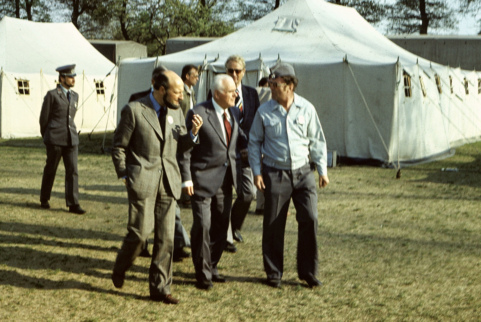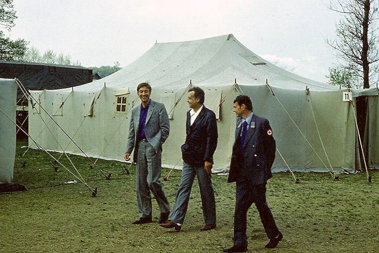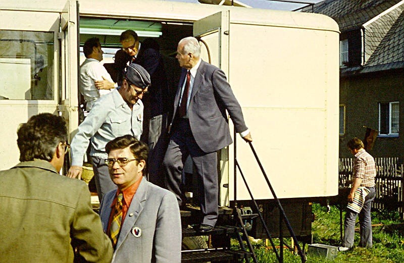 Es gab aber auch ein sehr offizielles Ereignis in diesen Tagen. Unser Präsident, Prof. Dr. Ludwig hatte sich zum Besuch des Lagers angesagt. Er wollte absolut keinen großen Empfang, das war wohl nicht das, was er in unserem Lager erleben wollte, nein, er wollte einfach unter den Teilnehmern sein, ihnen Anerkennung zollen für die Einsatzbereitschaft und "Danke" sagen und er wollte einigen Ehrengästen des DRK, die immer zu solchen großen Festen geladen werden, zeigen, wie der Hilfszug funktioniert, denn solch eine Einrichtung hatten die befreundeten Rot-Kreuz-Organisationen (des Ostblocks) nicht. Deshalb hatte er auch die Gäste dieser Organisationen eingeladen, mit ihm nach Euba zu kommen, um selbst zu sehen, welche technischen Mittel dem DRK der DDR im Havarie- oder Katastrophenfall zur Verfügung stehen.