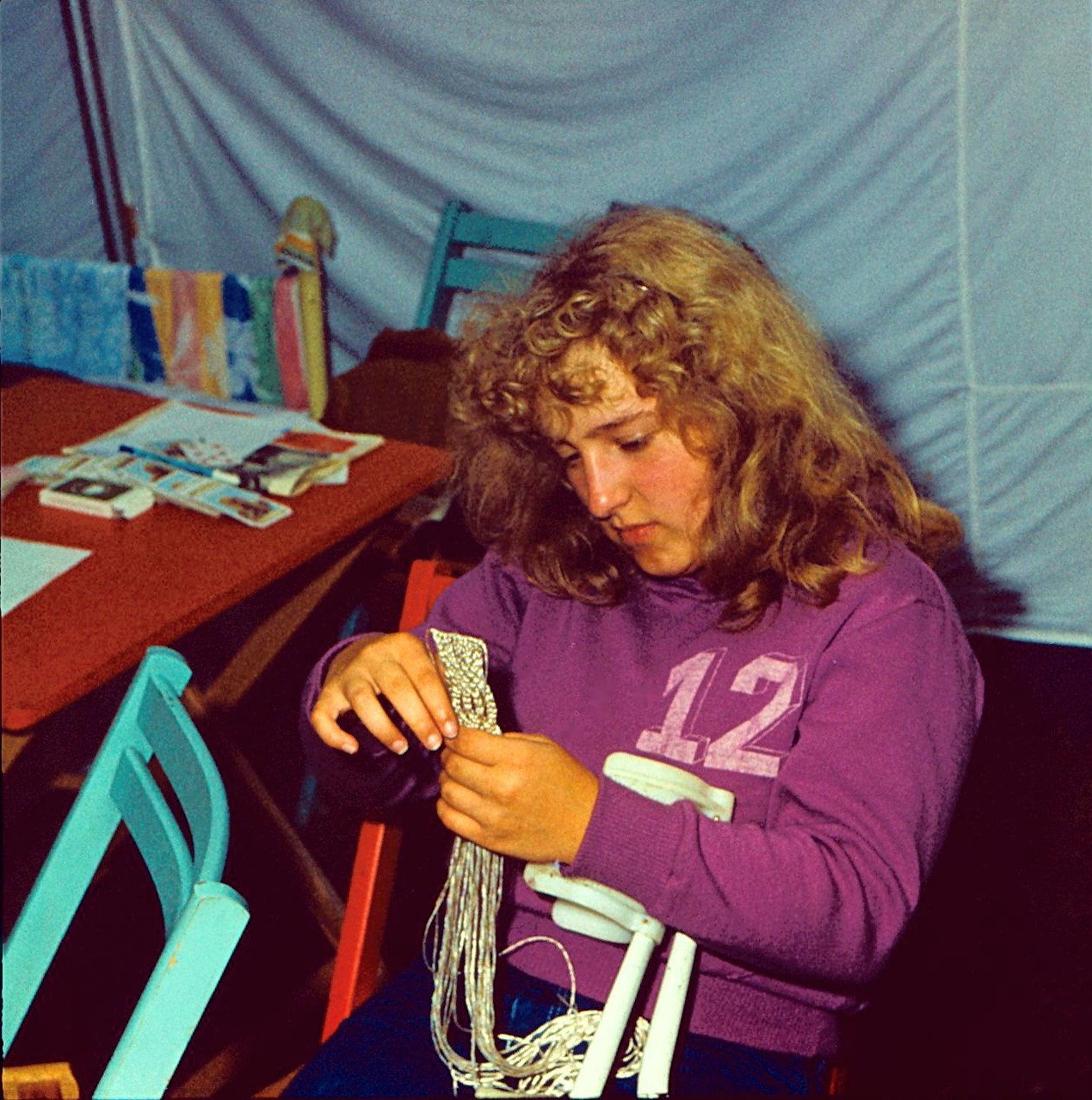 Einige der Makramee-Arbeiten, gemalte Bilder oder auch ein in "Schönschrift" geschriebenes Gedicht wurden in der Lagerleitung abgegeben. Wir hatten die Teilnehmer gebeten, uns solche Arbeiten zu überlassen und wollten sie als kleine "Dankeschön - Erinnerungen" an die Menschen weitergeben, die sich für das Gelingen des Lagers mit eingesetzt haben.