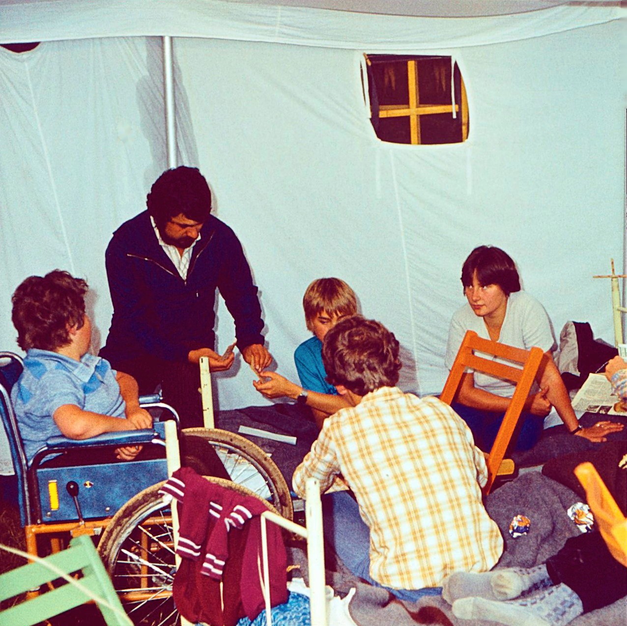 Also, alle anderen Aufgaben waren jetzt zweitrangig. Hauptaufgabe war ein Konzept für ein Ferienlager für Körperbehinderte – und das als Zeltlager, drei Wochen lang!