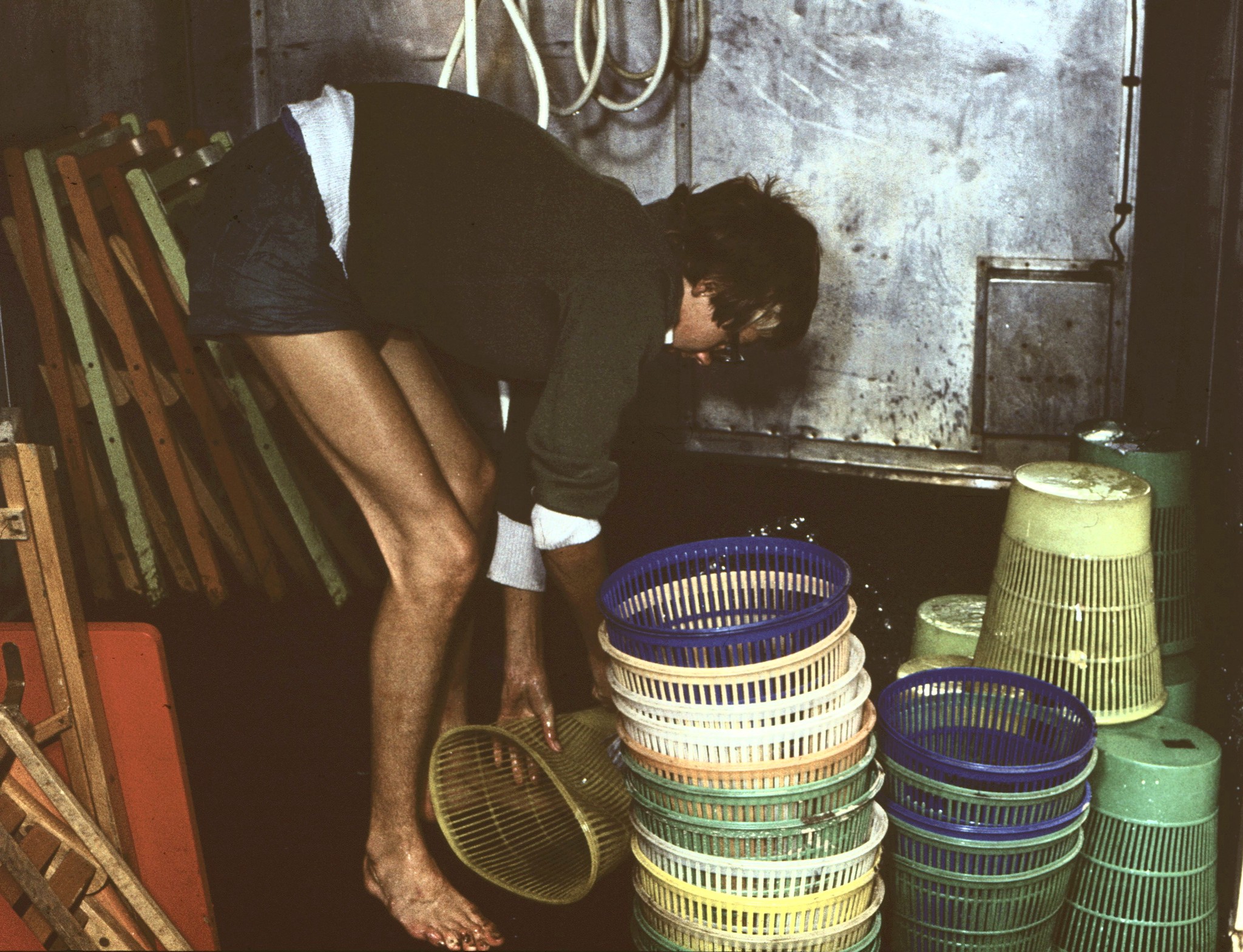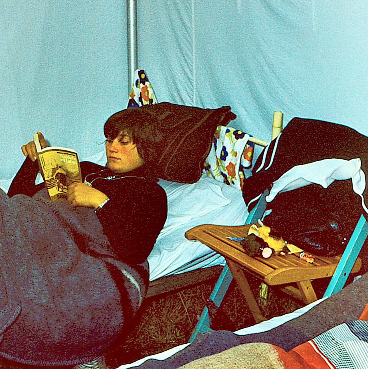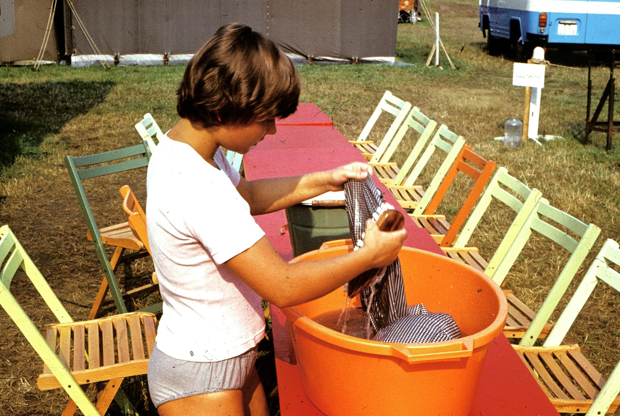 Neben diesen Versorgungsaufgaben hatten wir natürlich auch Betreuungsaufgaben zu erfüllen. Alle Lagerteilnehmer konnten mehrere Stunden am Tag unseren Duschzug nutzen – natürlich schön getrennt. Am Duschwagen gab es ja auf jeder Seite ein Umkleidezelt, hier also ein Zelt für Mädchen, die andere Seite für Jungen und dann auch in einem Zeitrhythmus – jeweils zirka eineinhalb Stunden für die einen, dann für die anderen – ganz wie der Andrang war. Die Ansage dazu kam über den Lagerfunk. Das war das Reich von Heinz, unserem Nachrichtentechniker.
