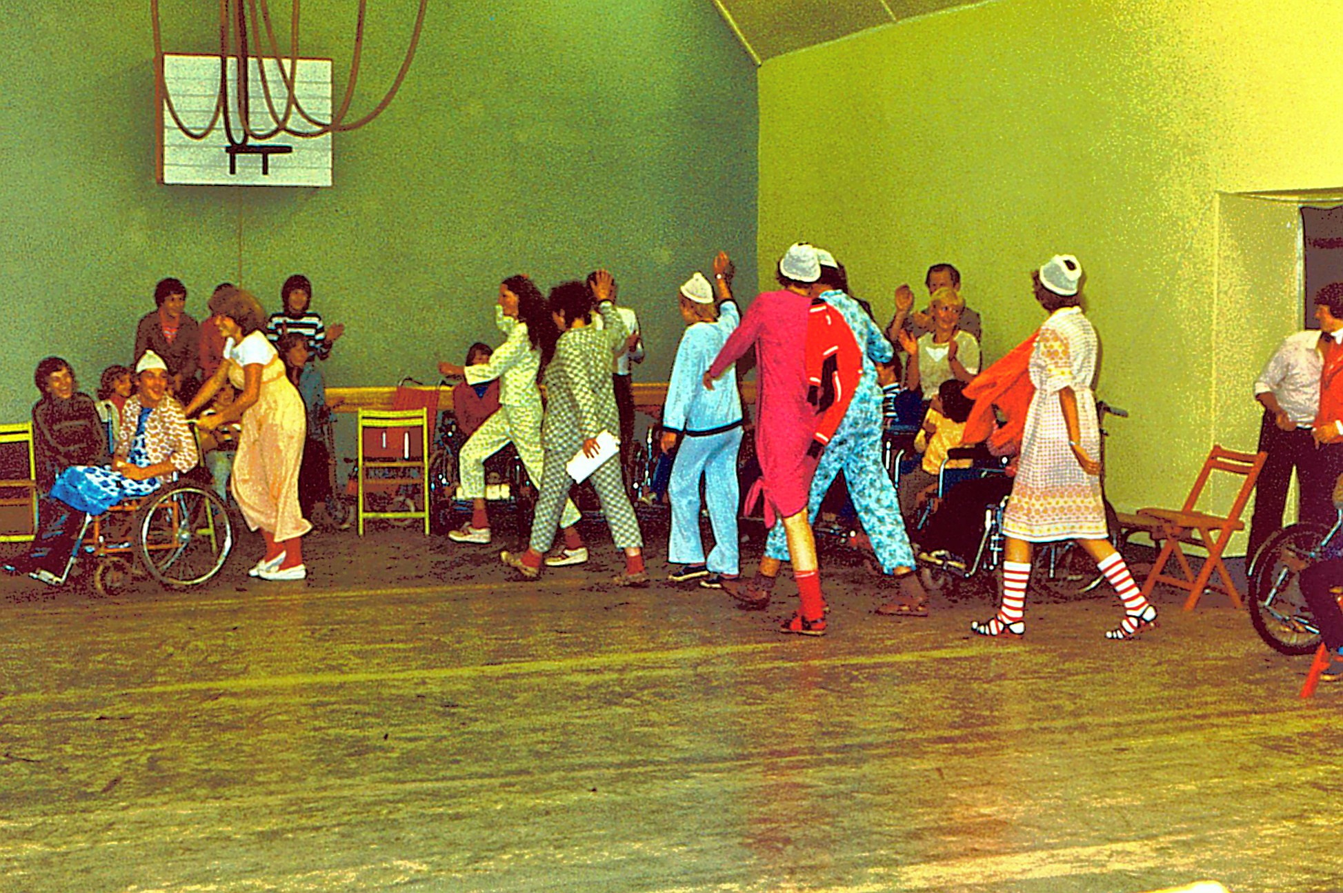Inzwischen haben wir - eigentlich unsere Truppe vom Jugendzug - mit Hilfe von unserem Nachrichtentechniker Heinz und einem Discjockey, den unser "Kulturmanager" organisiert hatte, eine Abschlussparty in der Turnhalle vorbereitet. Wir wollten den Tag richtig fetzig ausklingen lassen.