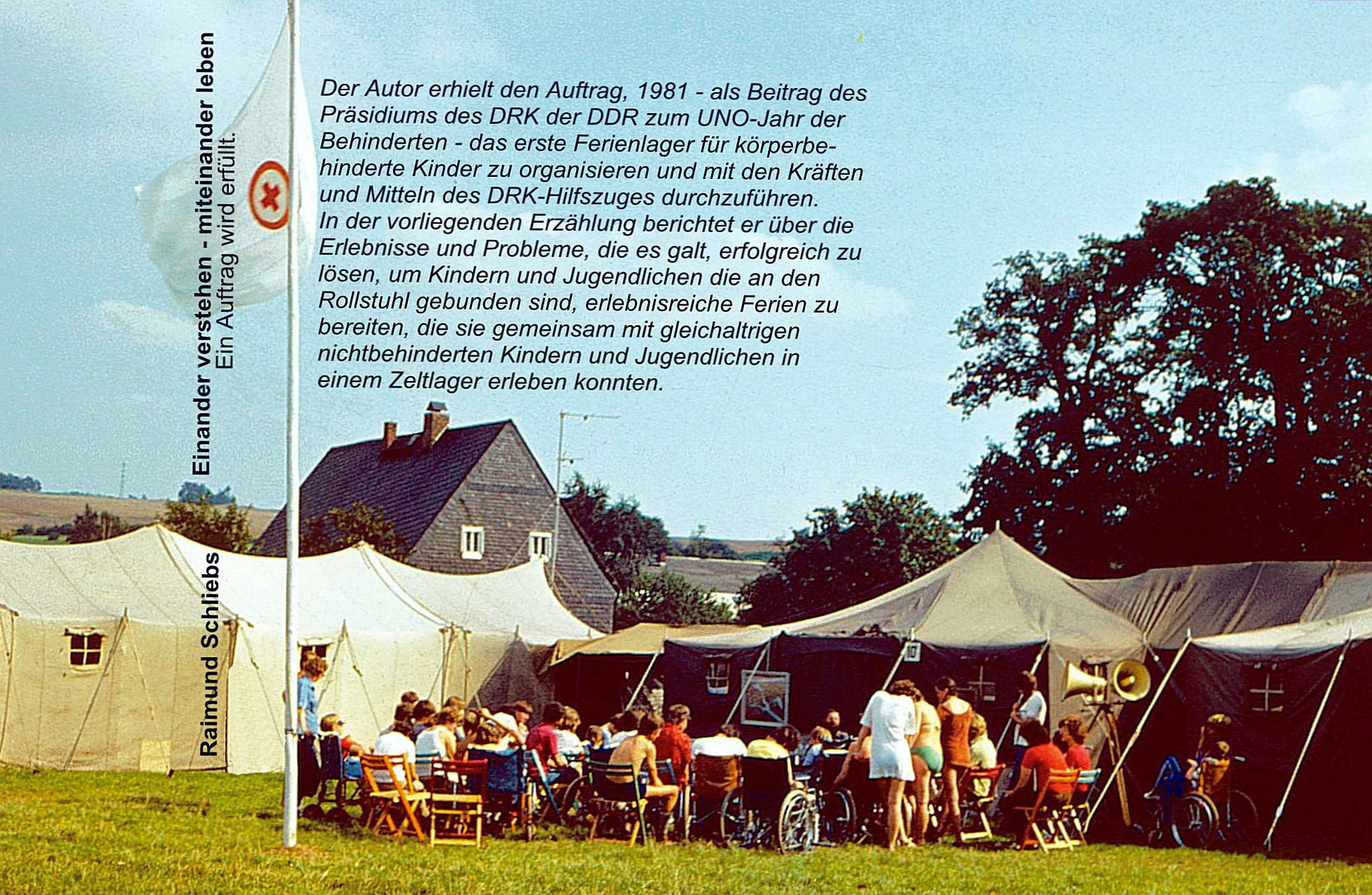 Mein besonderer Dank gilt immer wieder unseren Partnerinnen und Partnern, die in jeder Situation Verständnis für die Begeisterung der hauptberuflichen und ehrenamtlichen Mitarbeitern des Hilfszuges des Präsidium des Deutschen Roten Kreuzes der DDR aufbrachten. Eine Einrichtung, die den gesellschaftlichen Umschwung leider nicht überstanden hat. Der Einsatz, ein Ferienlager für körperbehinderte Kinder und Jugendliche durchzuführen, war ein offizieller Beitrag unserer Organisation zum UNO-Jahr der Behinderten 1981.