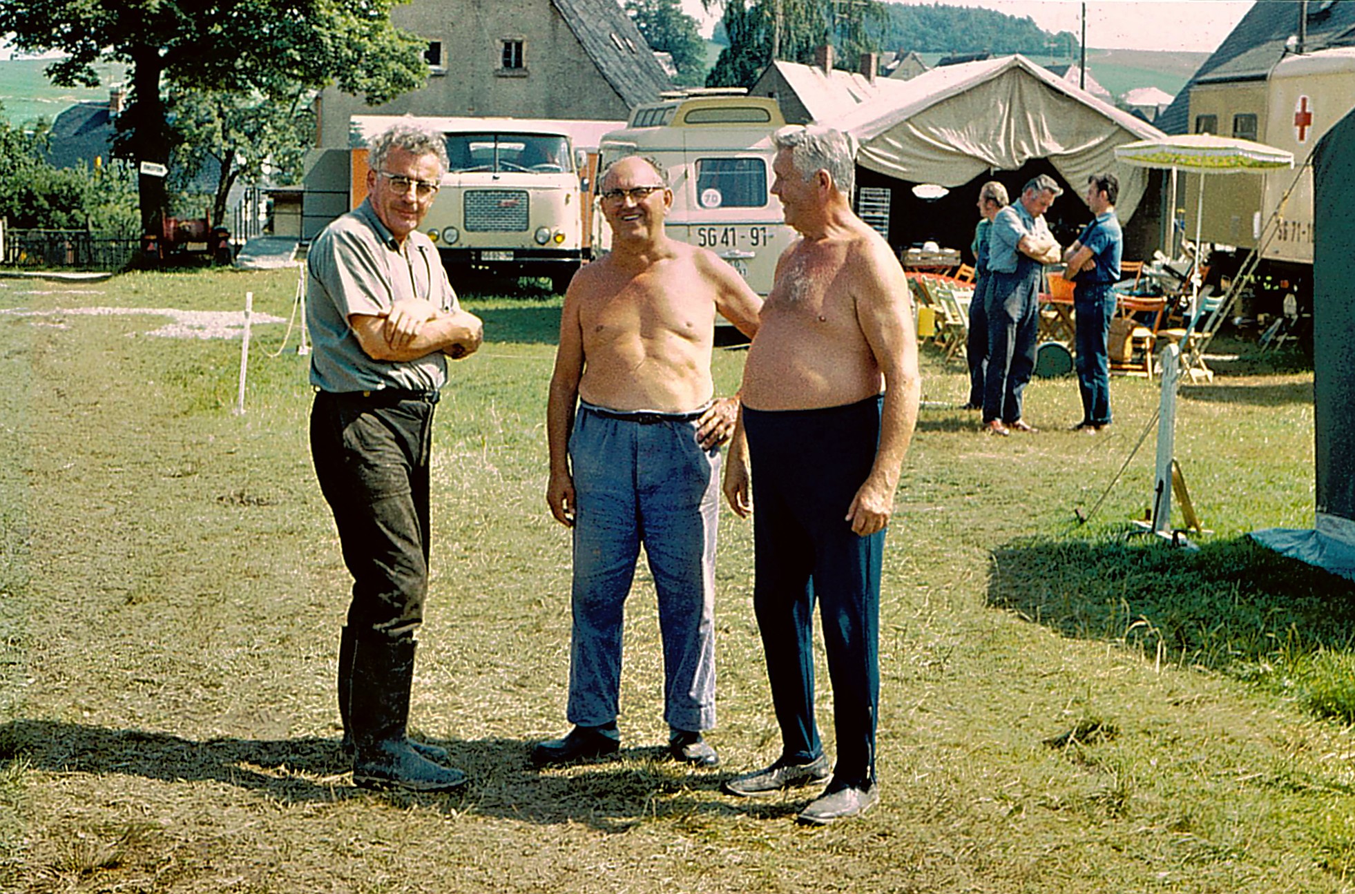 Der Vizepräsident des Präsidiums des DRK der DDR, Kamerad Obermedizinalrat (OMR) Dr. med. Hagemoser – nach dem Präsidenten des DRK unser oberster Chef, denn die Einheit Hilfszug war ihm direkt in der Führungshierarchie unterstellt – war nach dem offiziellen Abschlussappell aller Teilnehmer im Lager geblieben. Er hatte mit den Kameradinnen und Kameraden ein gutes kameradschaftliches Verhältnis. Gelegenheiten, ein persönliches Gespräch zu führen, sich nach Familie und Problemen zu erkundigen – ein freundliches Schwätzchen hier und da. Ich glaube, er fühlt sich immer wohl im Kreis unserer Mannschaft.