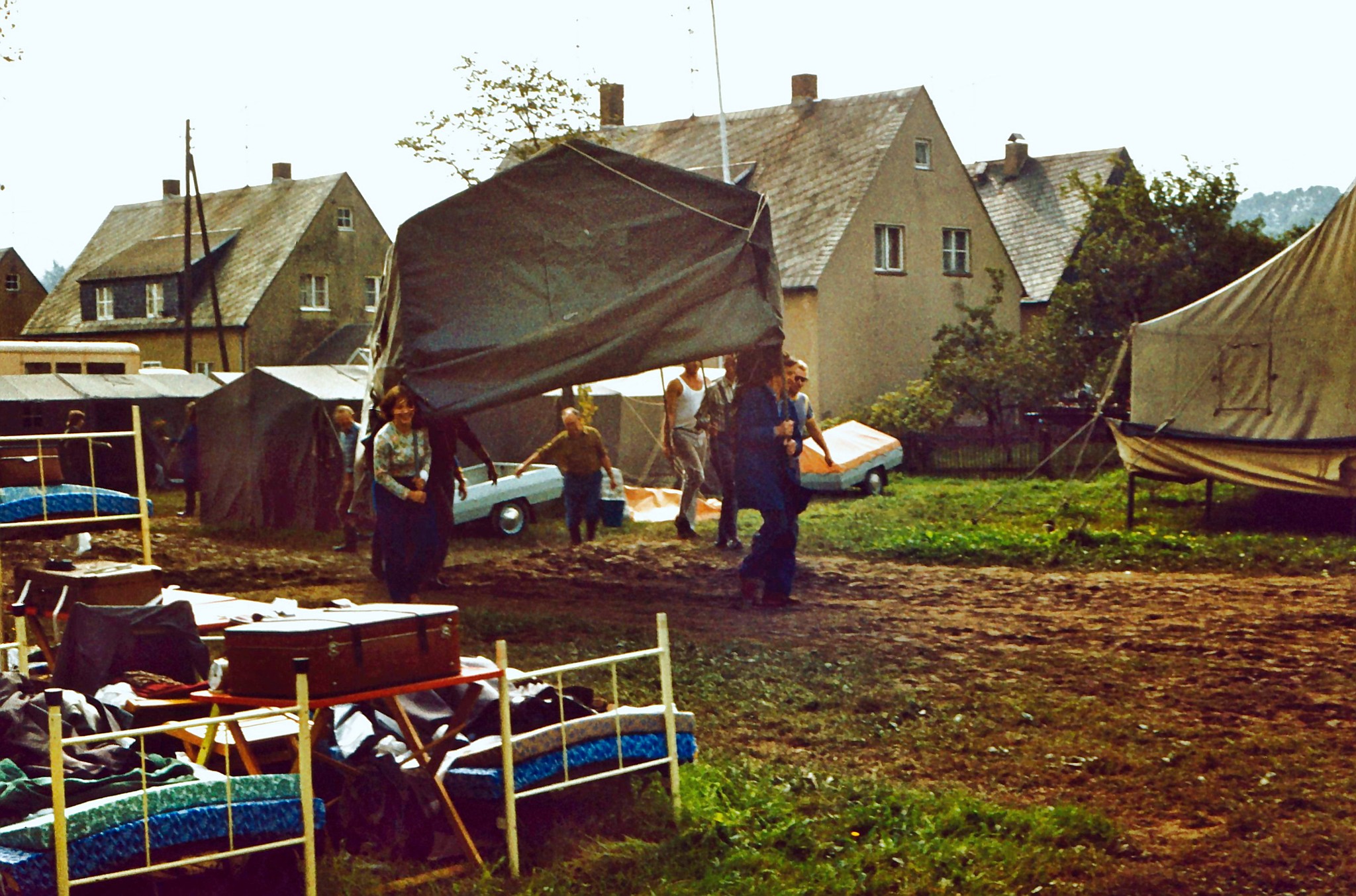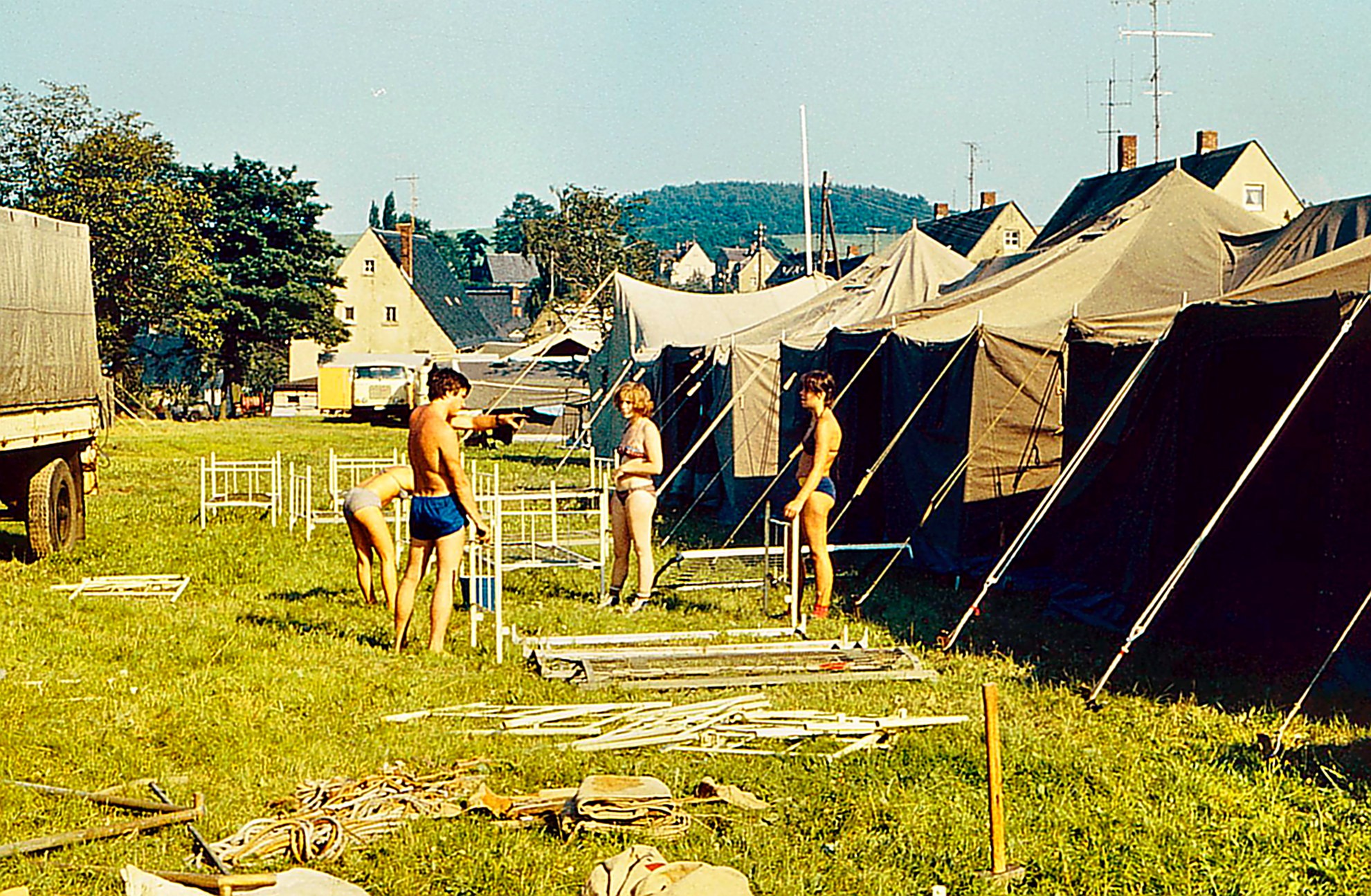 Der letzte Wagen mit Mitgliedern des Jugend-Rotkreuzes hat 1980 das Zeltlager in Euba Richtung Bahnhof Karl-Marx-Stadt (jetzt heißt die Stadt wieder Chemnitz) verlassen. Es kehrt wieder Ruhe im Zeltlager ein.