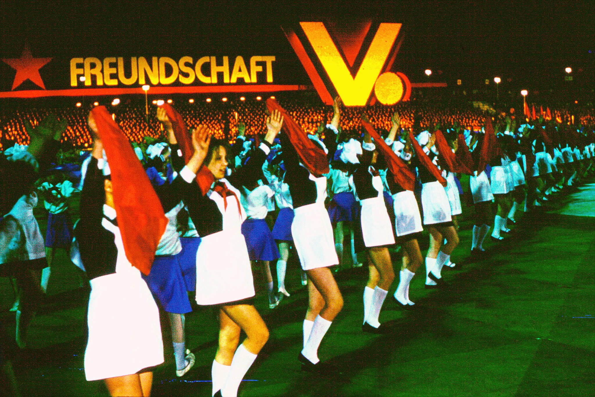 250 jugendliche Gesundheitshelfer haben vier Tage in unserem Lager gelebt. Tagsüber waren die Kameradinnen und Kameraden bei einer Vielzahl von Veranstaltungen im Rahmen des V. Festivals der Freundschaft als Gesundheitshelfer im Einsatz. Wie immer zu solchen Jugendtreffen, waren einige tausend Jugendliche eingeladen, ein Freundschaftstreffen mit sowjetischen Gästen zu feiern.