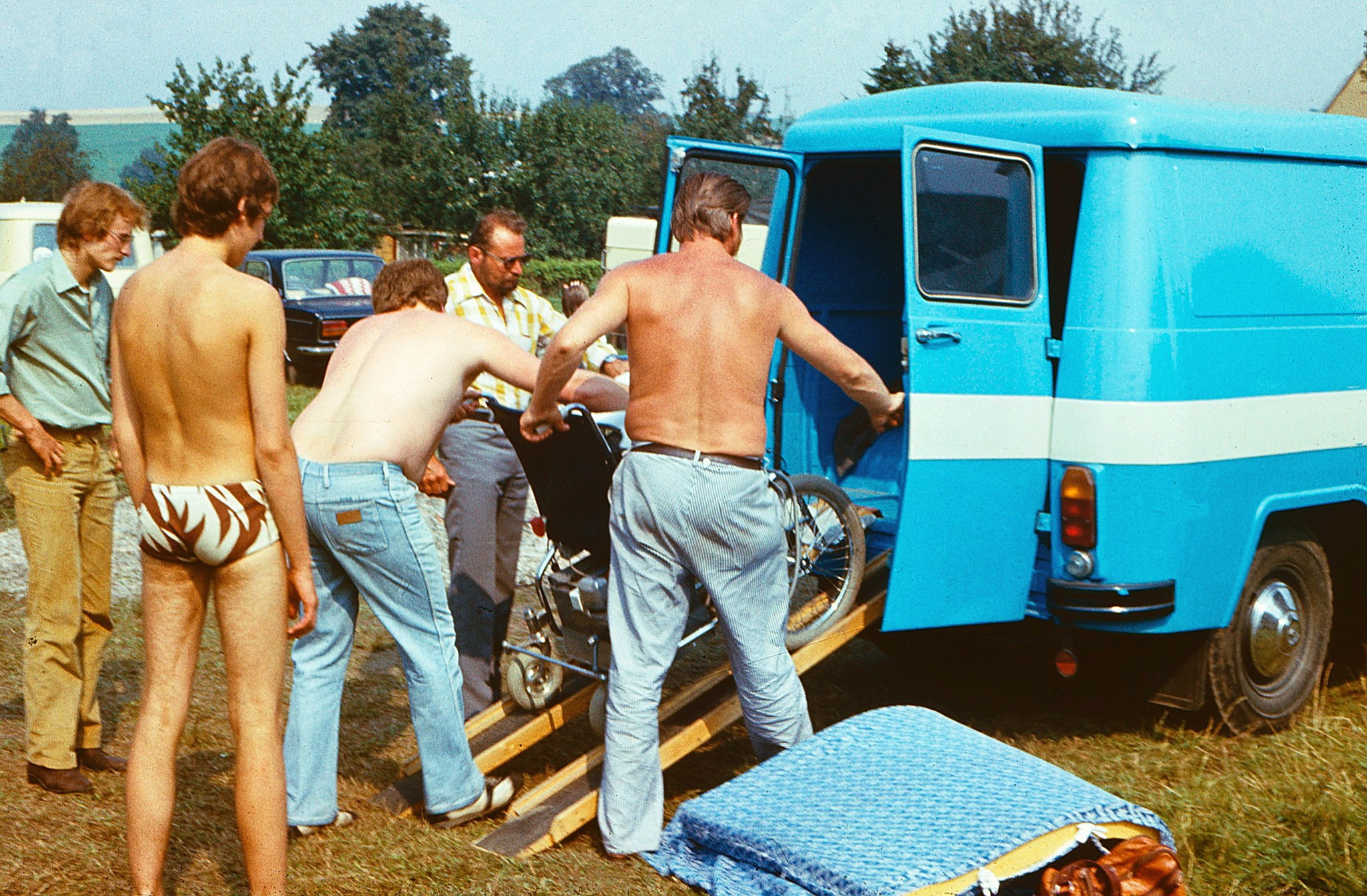 Bis in die Stadt, mit dabei waren die Damen der Lagerleitung, unser "Kulturmanager" sowie Ursel, unsere Seele von Krankenschwester. Sie hatten ihre Sache wirklich gut gemacht und es war eine sehr gute Zusammenarbeit zwischen Lagerleitung und Einsatzleitung. "Danke" dafür, es hat Spaß gemacht mit euch zusammen zu arbeiten. Wir verabschiedeten uns auch von einigen Mitgliedern des Jugendzuges. Sie hatten ab der kommenden Woche andere Verpflichtungen und sollten so wenigstens den Sonntag noch für sich haben. Ein herzliches Dankeschön für ihre Einsatzfreude, die sie hier im Lager wieder bewiesen haben. Wir sehen uns ja spätestens zum nächsten Clubabend in Leipzig wieder. Es war mit Karl-Heinz verabredet, dann eine Gesamtauswertung des Einsatzes vorzunehmen. Wenn meine Fotos geworden sind, wollte ich dann einen Dia-Vortrag zu dem ersten Rollstuhl-Ferienlager halten. Na ja, ich hatte noch mit einer analogen Kamera fotografiert und da war man erst sicher, dass die Bilder was geworden sind, wenn man den entwickelten Film in der Hand hatte. Ich hatte da noch einen kleinen Vorteil, denn das Entwicklungslabor war bei mir zu Hause im Hinterhof und da wurde ich bevorzugt, wenn ich Filme abgab. Meist am selben Tag bekam ich die entwickelten Filme zurück und wurde nicht noch tagelang auf die Folter gespannt, wie "Otto Normalverbraucher", der teilweise eine Woche auf die Entwicklung seiner Filme warten musste. Digitaltechnik, so wie heute, wo man sofort nach dem Auslösen auf dem Bildschirm sieht, wie das Foto gespeichert wird, gab es damals für uns noch nicht.