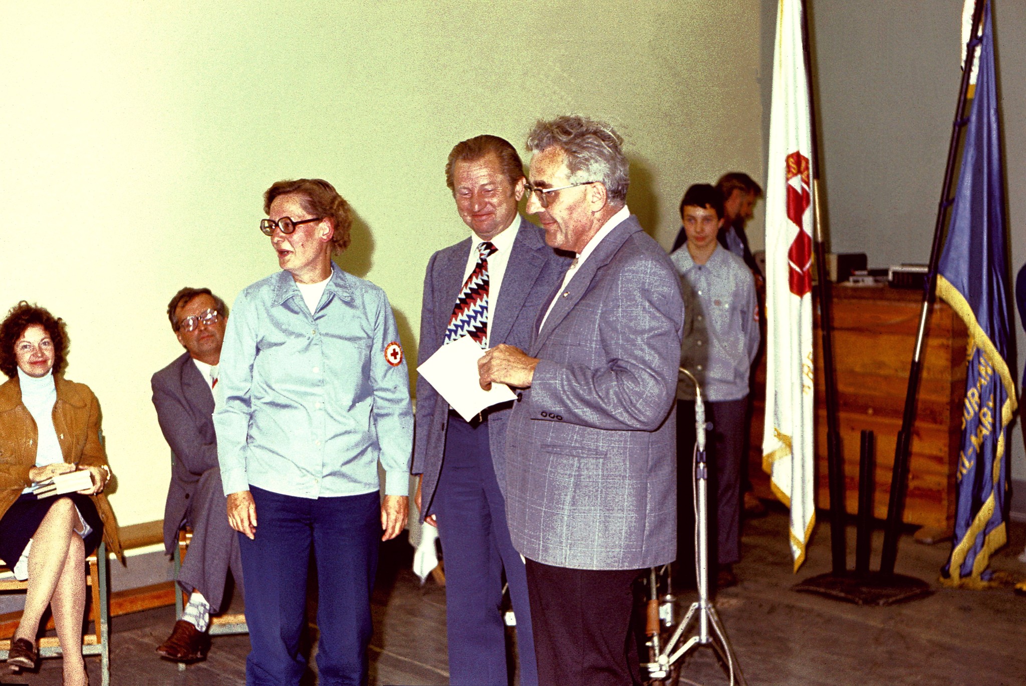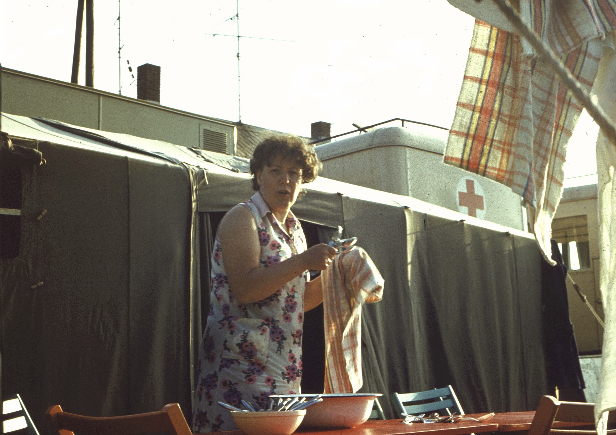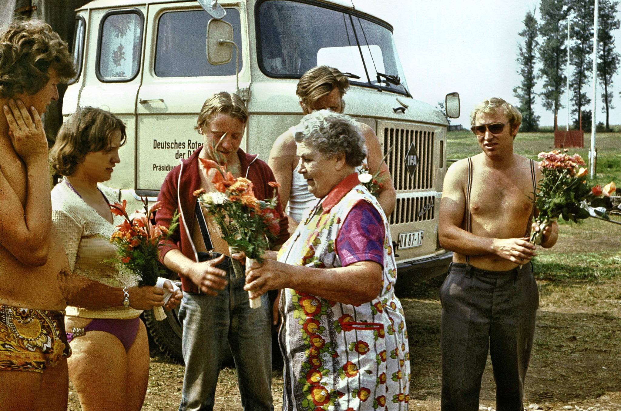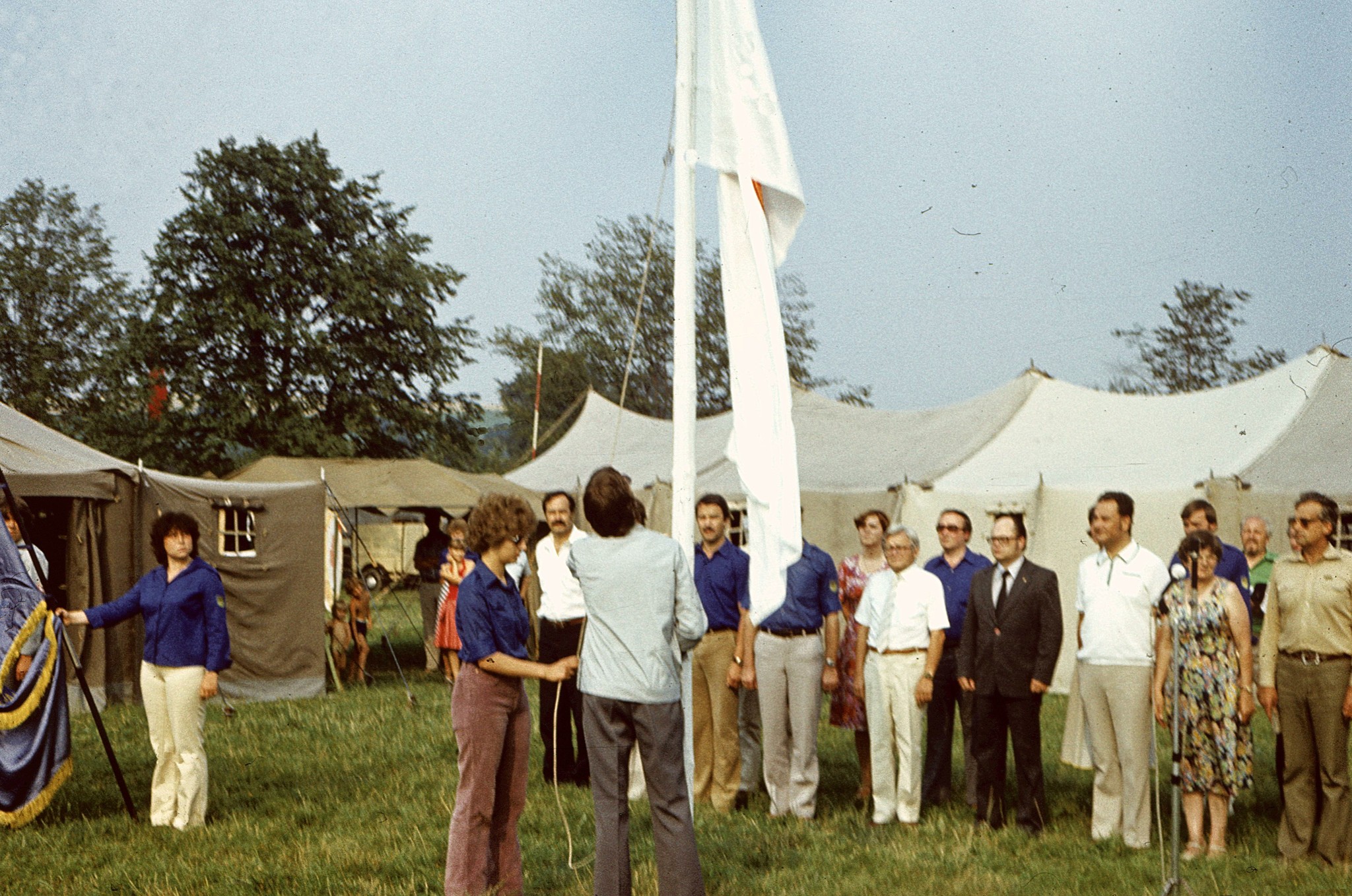 Ursel übernahm es, im Namen der Teilnehmer dem Präsidium des DRK der DDR dafür zu danken, dass dieses Lager stattfinden konnte, dann wandte sie sich an unsere heutigen Gäste, oder besser, unsere Nachbarn, die uns sehr oft und mit herzlicher Selbstverständlichkeit Hilfe und Unterstützung gaben.
