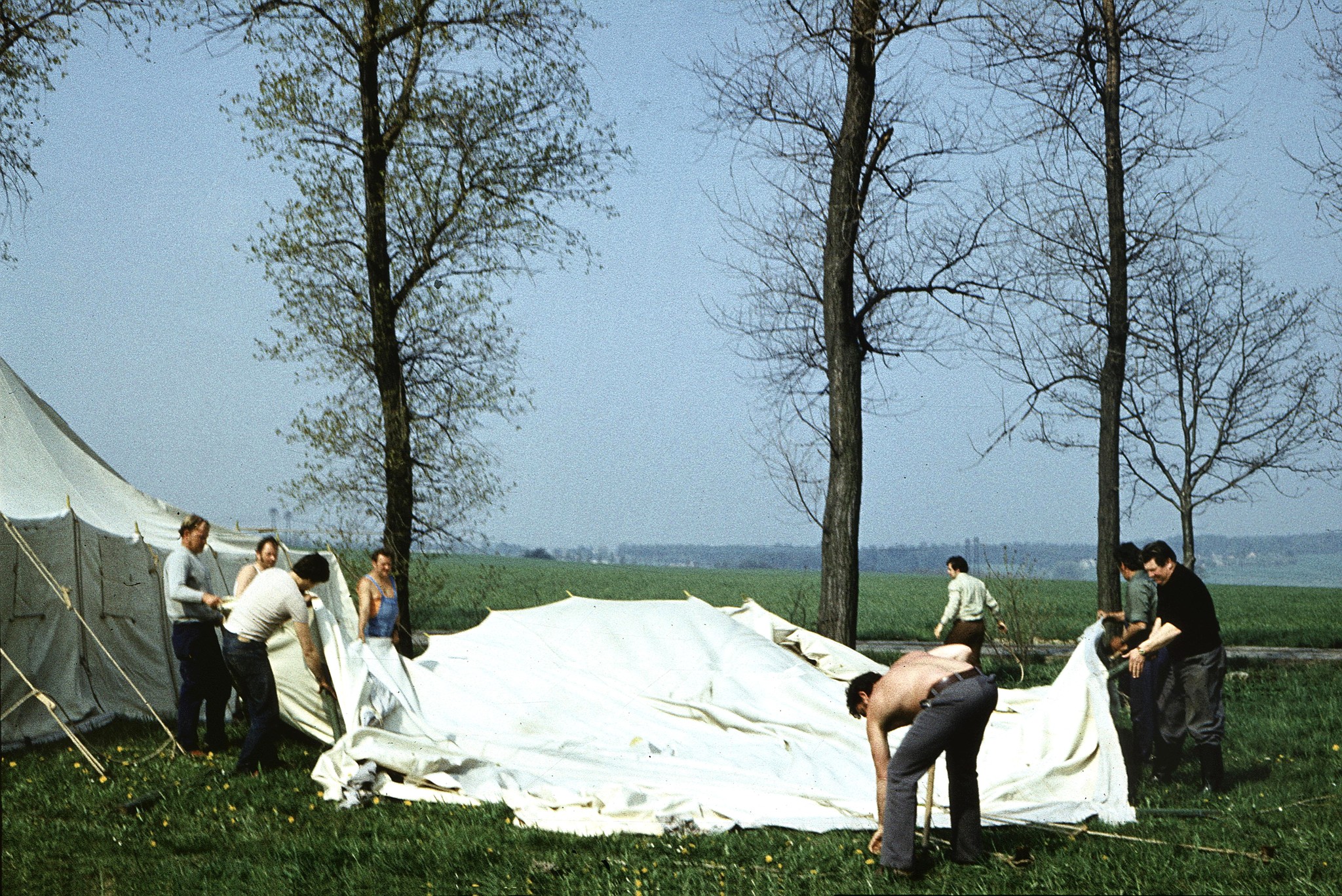 Der Sonnabend brachte wunschgemäß schönes Wetter, so dass die Zelte schnell trocken wurden. Das Speisezelt wurde als erstes Zelt abgebaut, alle Teile ordnungsgemäß zusammengelegt, die gefalteten Zeltbahnen zusammengerollt und gleich verladen.