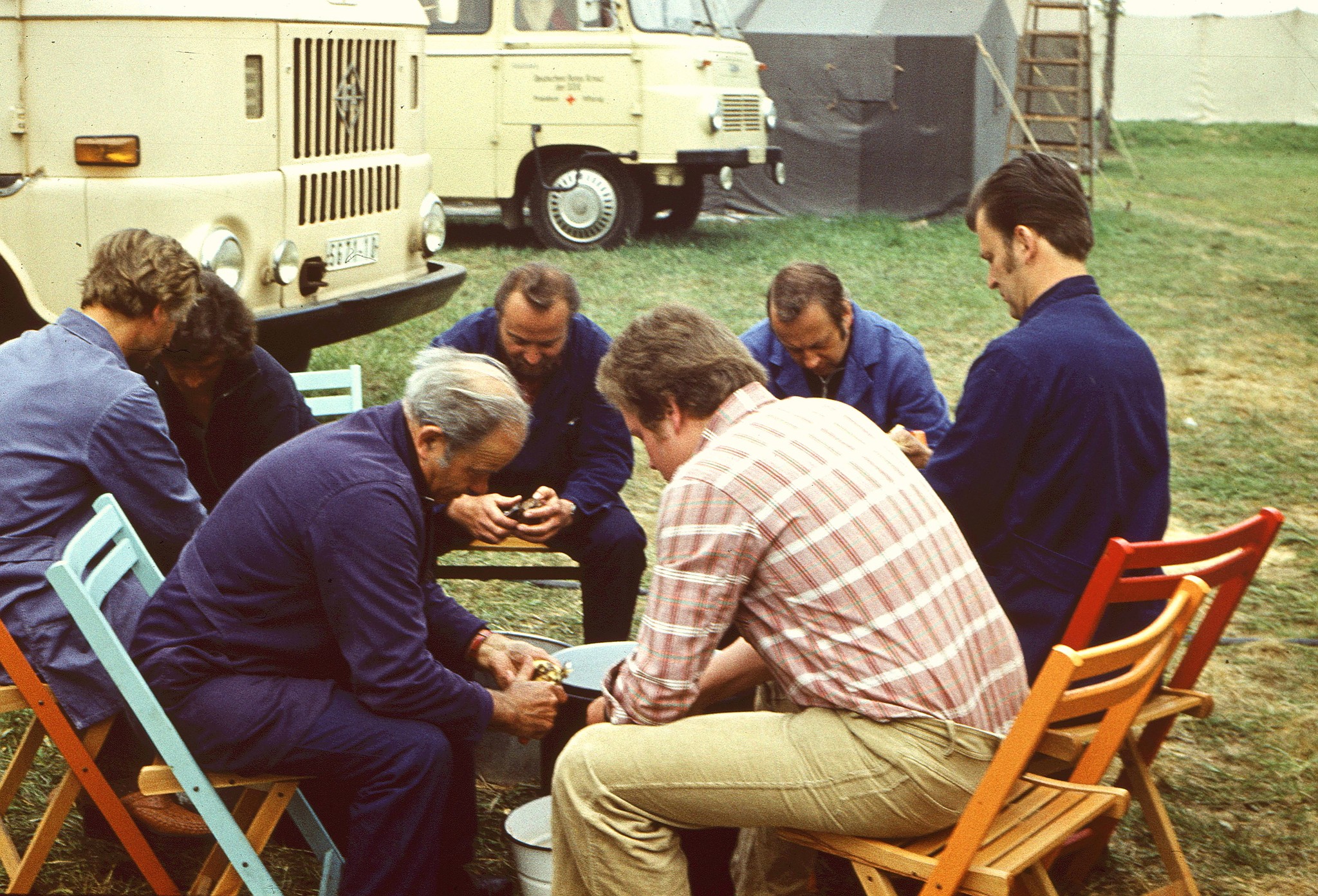 Im Speisezelt sorgte meist einer unserer Köche, ein Mädel vom Jugendzug und Erich für die Essenausgabe. Aber Erich war auch der Fahrer von einem unserer B1000-Busse, musste also oft wieder auf Tour. Trotzdem, es klappte alles wie immer, unsere Gäste waren zufrieden und wir auch.