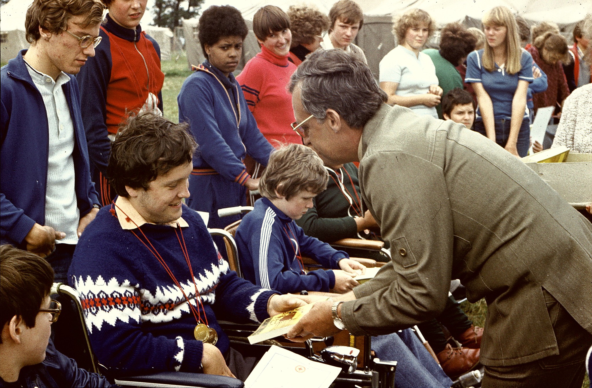 Dann die Idee: Wir schlagen dem Kameraden Vizepräsident vor, zu den 20 Rolli-Kindern 20 nicht geschädigte Kinder einzuladen. Sie sollten allerdings wissen, mit wem sie das Lager teilen und sollten hilfsbereit und verständnisvoll sein.